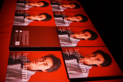 De Arbeiderspers|A.W.Bruna Uitgevers het woord en overhandigt het boek aan de auteur Erwin Kokkelkoren, fotograaf Erik Smits en producent Bert Oele.